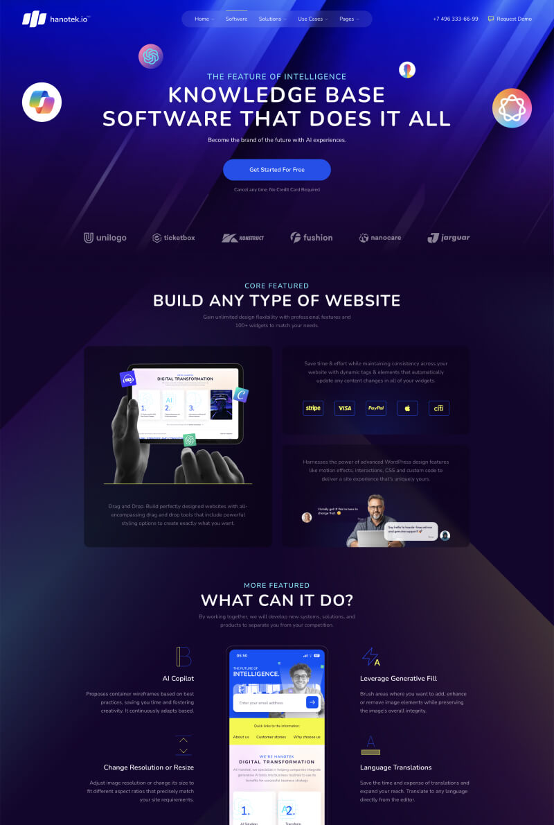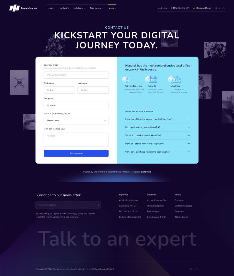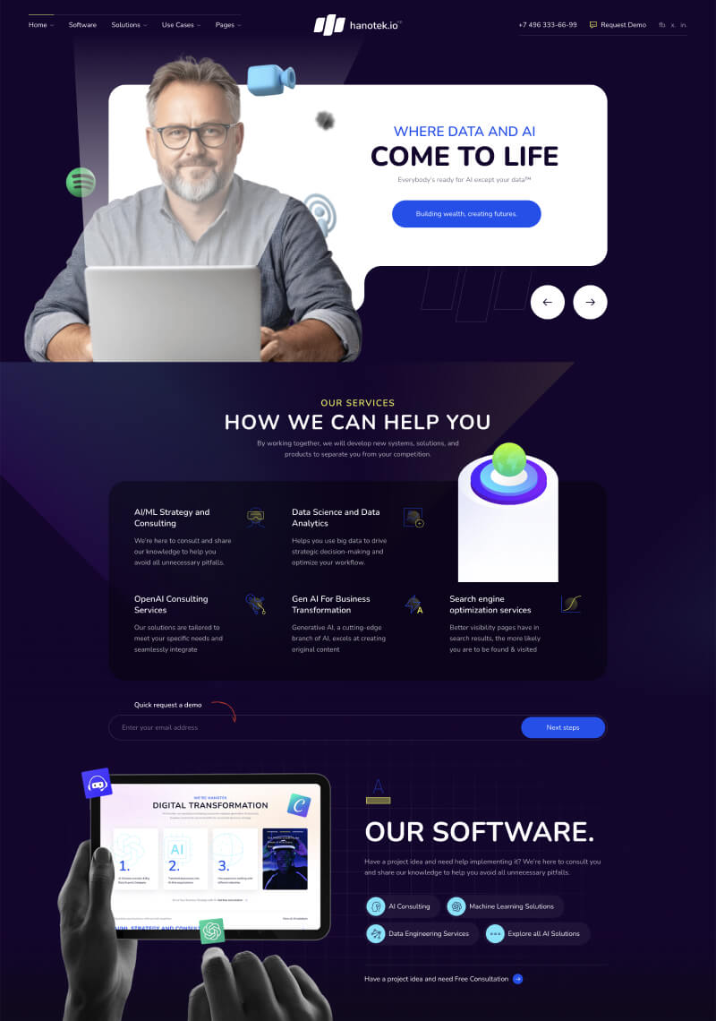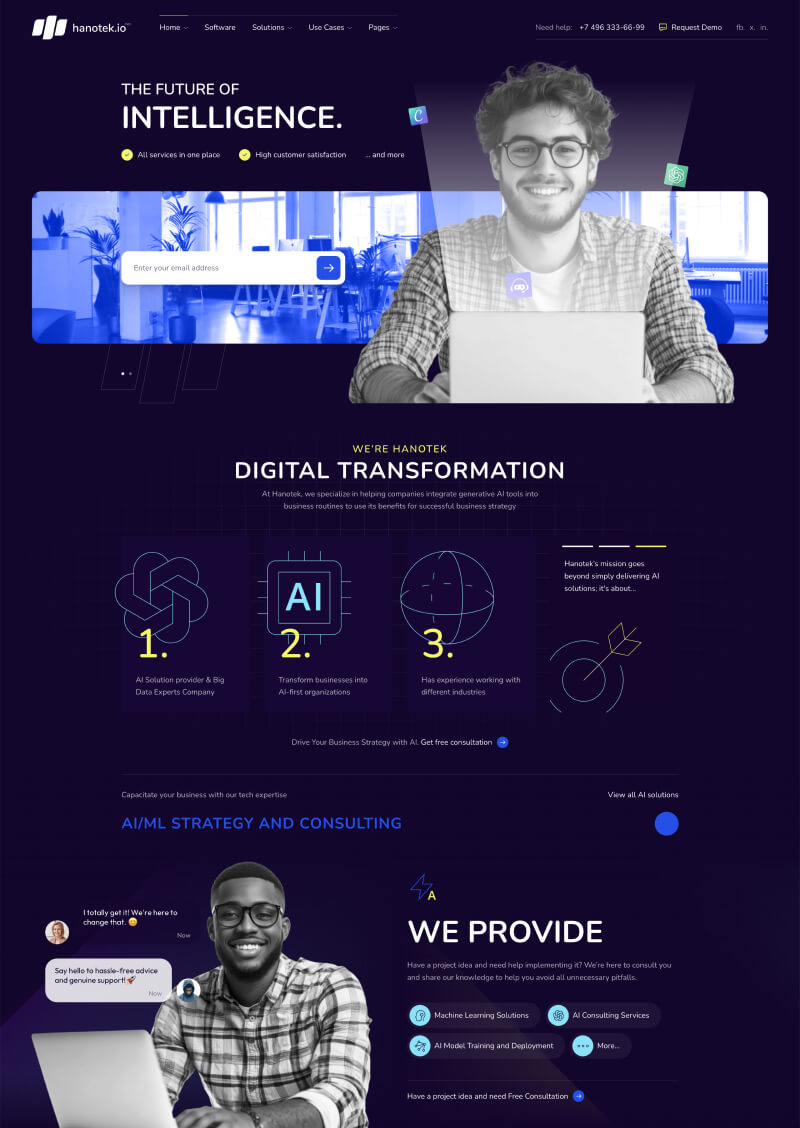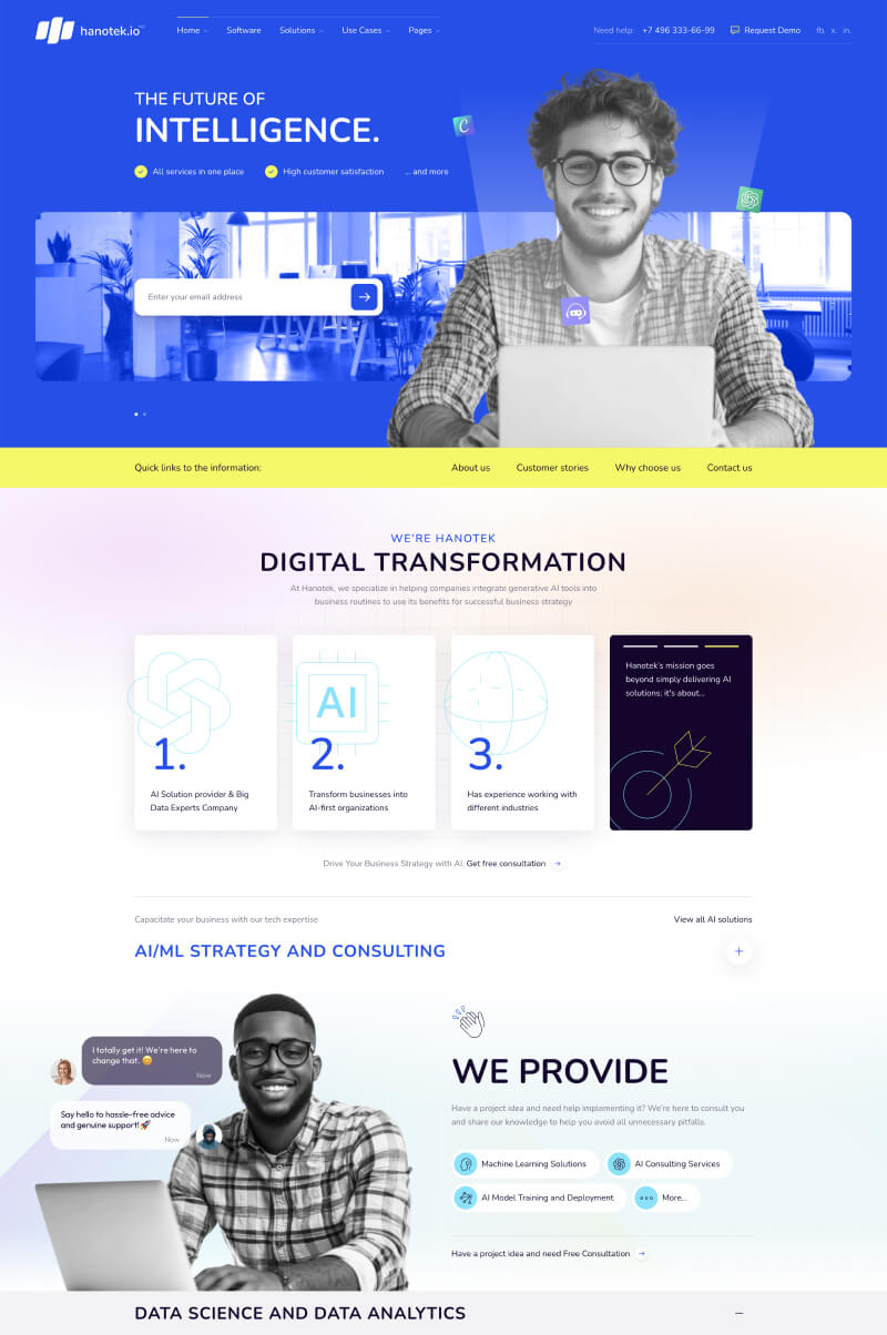HanoTek - theme best suits the websites and startups related to AI Agency, Technology, Marketing, Digital Transformation, etc